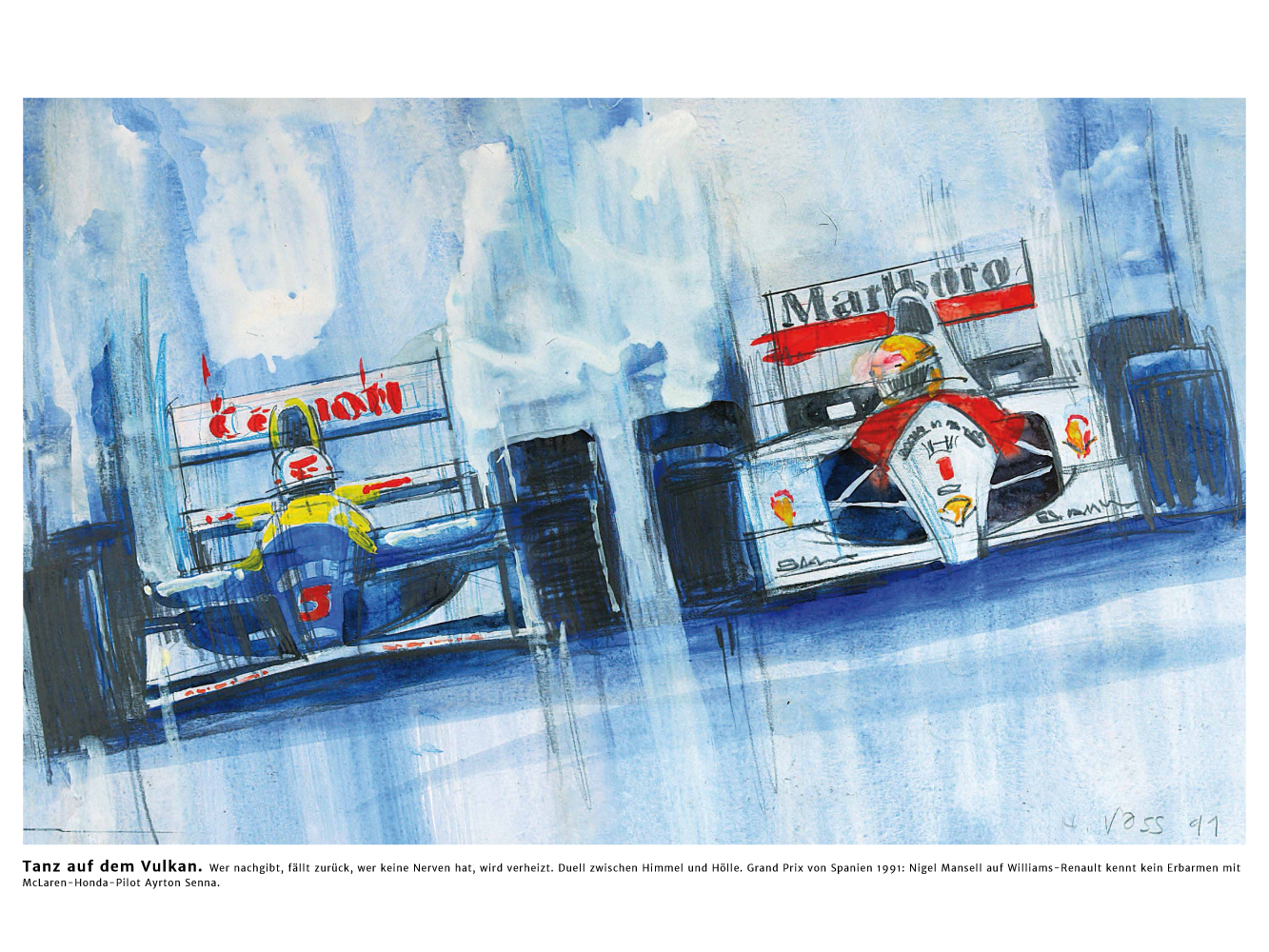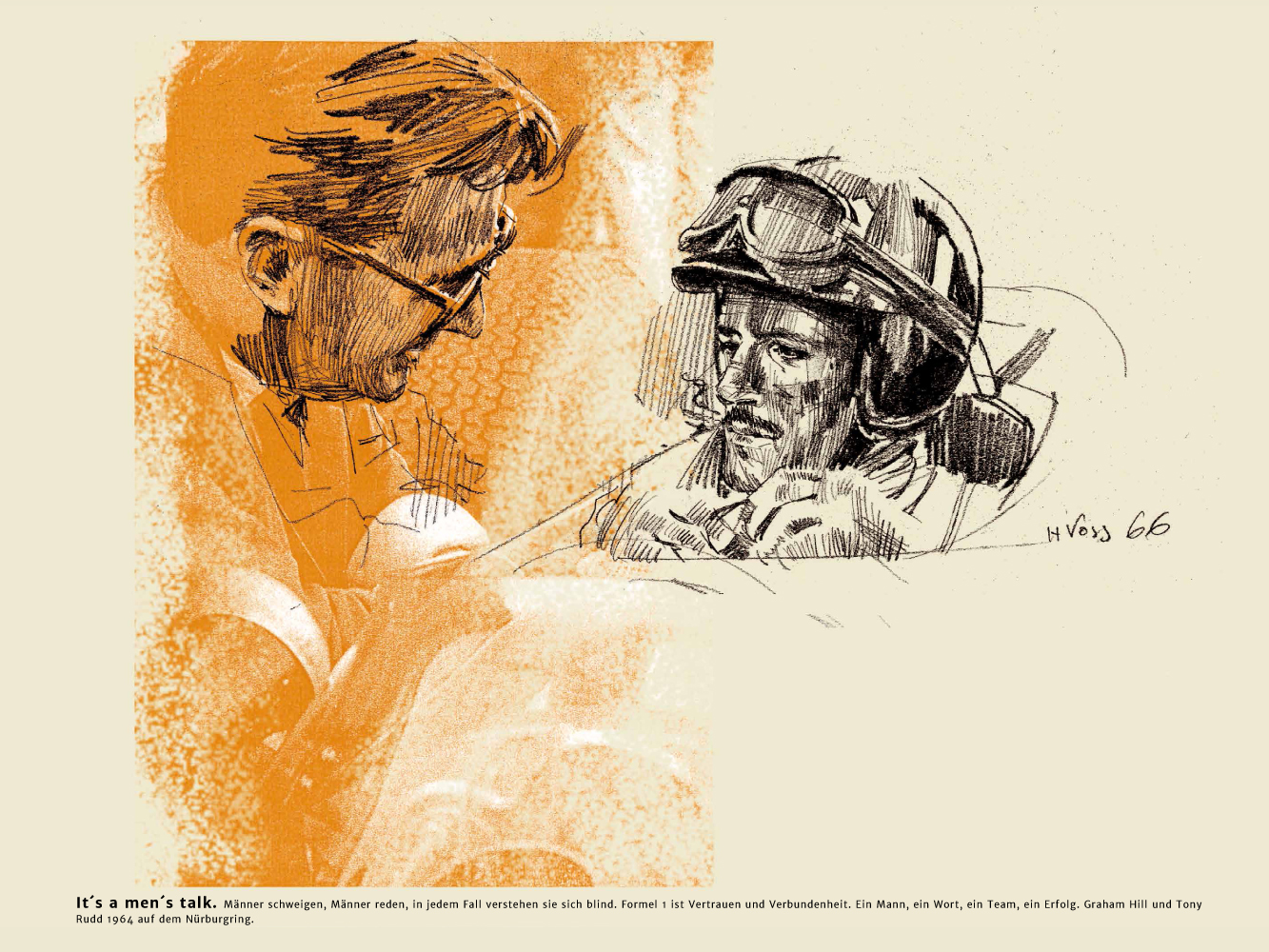 40 Jahre lang hat der Maler und Zeichner Hans Voss Tragik und Triumphe des Motorsports in seinen Werken leidenschaftlich dokumentiert. Zu Beginn vorsichtig und filigran, später kühn, rasant, explosiv. Die Techniken: Öl und Acryl, Wachs, Bleistift, Kreide.